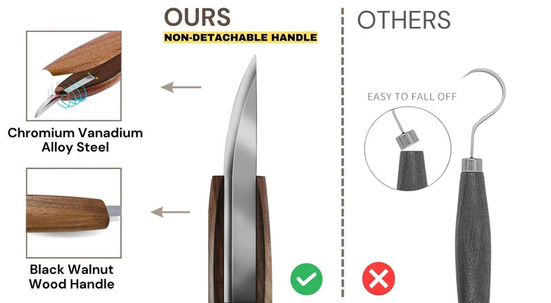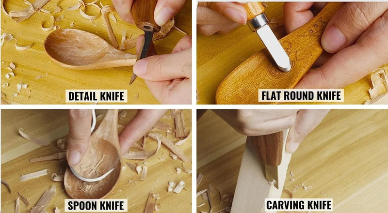 Each knife in the set is designed for a specific woodworking task, offering the flexibility to create anything from simple spoons to intricate crafts. This all-inclusive kit caters to your specific needs.