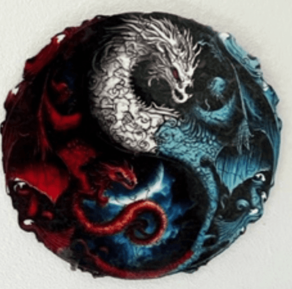Advanced UV printing technology ensures bright and vivid Dragons Yin Yang design that becomes a stunning art displays when completed.