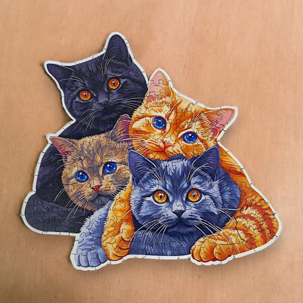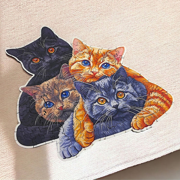 As you assemble the puzzle, you’ll encounter countless unique cat shapes featuring various fascinating cat characters such as: Sunbathing, Dreaming, Grumpy, Sleeping Cat, etc.