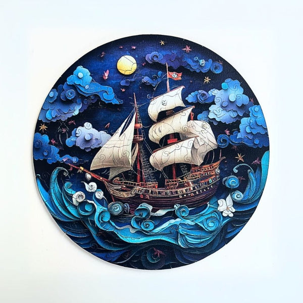 The pieces are wooden and laser cut into unique shapes and images. The pieces are interesting and fun, even before you start to put the puzzle together. The puzzle itself is vibrant, sturdy.