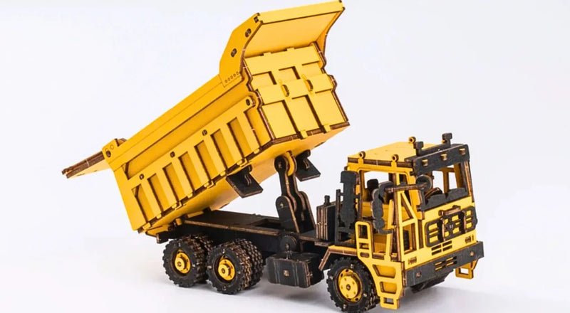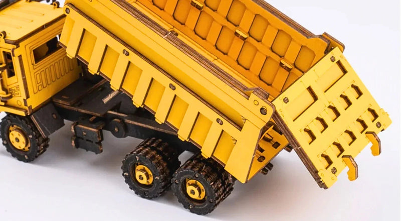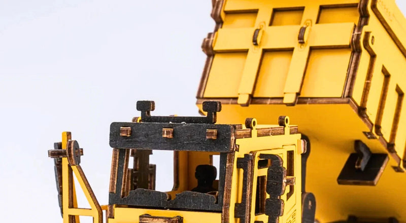 This is a detailed and enjoyable-to-use toy dump truck, mirroring authentic industrial machinery. The kit provides a fun DIY experience with its wooden dump truck 3D puzzle that uses laser-cut technology for effortless assembly.