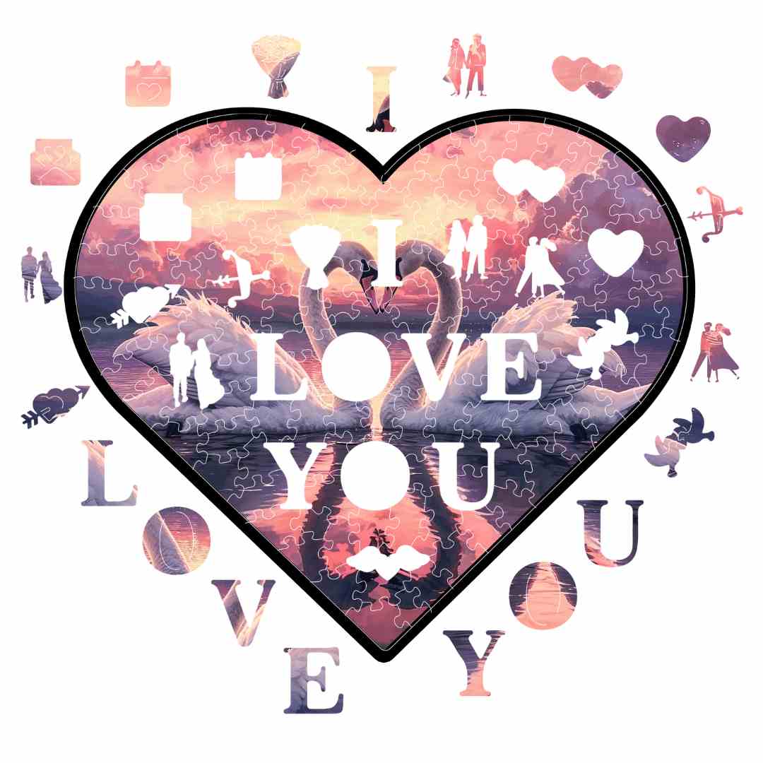 Dive into romance with the “Eternal Swans” jigsaw puzzle, featuring unique pieces shaped like couples, hearts, and Cupids, crafted for a magical puzzling experience.
