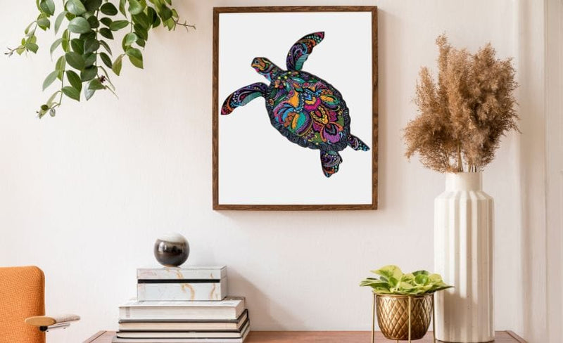 Advanced UV printing technology ensures bright and vivid Floral Turtle design that becomes a stunning art displays when completed.