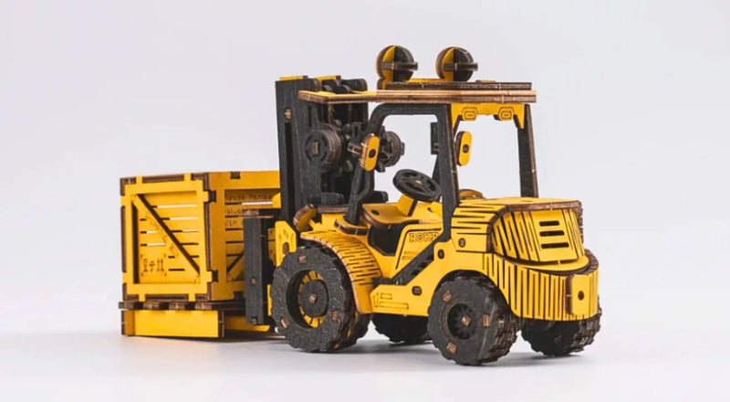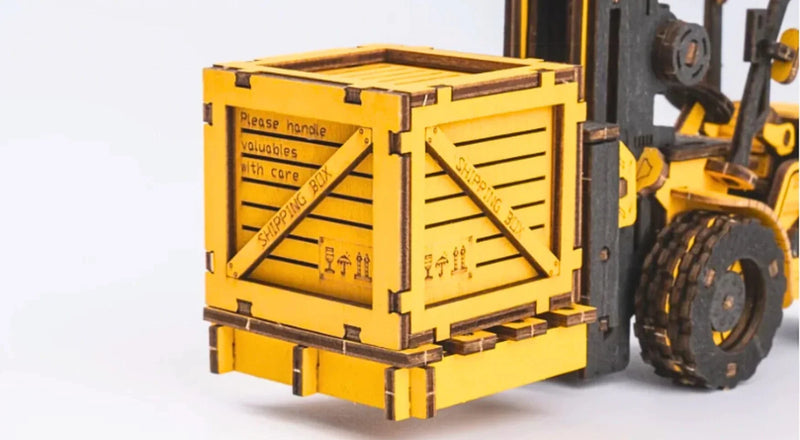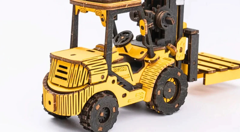 This is a detailed and enjoyable-to-use toy forklift, mirroring authentic industrial machinery. The kit provides a fun DIY experience with its wooden Forklift 3D puzzle that uses laser-cut technology for effortless assembly.