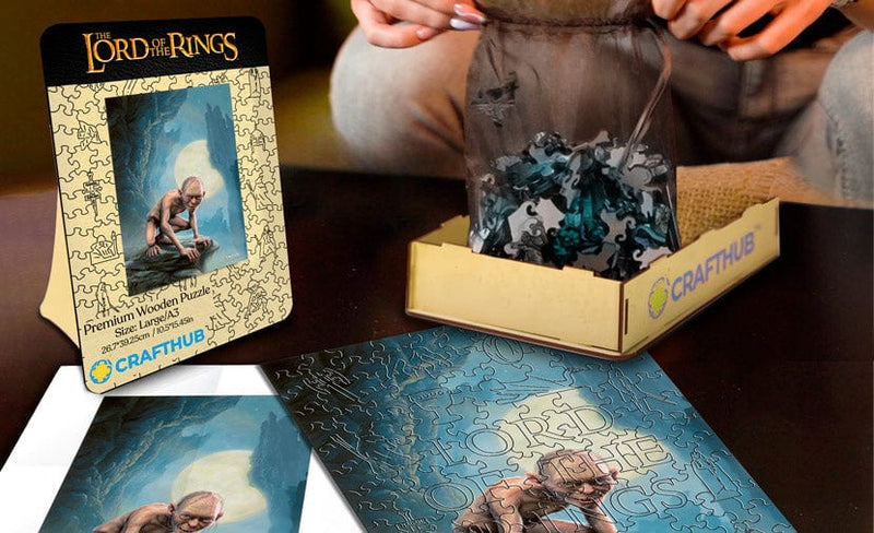 “My precious.” This puzzle brings to life the conflicted creature Gollum, once known as Sméagol. His intense gaze captures the perpetual battle within him for the One Ring that corrupted his soul.