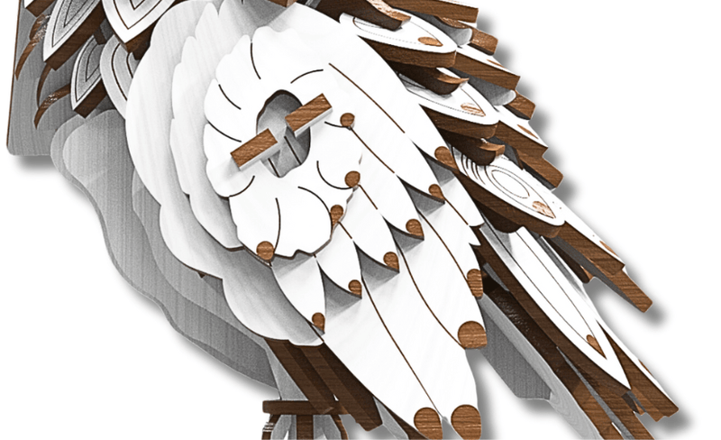 Layered pieces replicate Hedwig’s feathers, adding realistic texture and depth to her body.