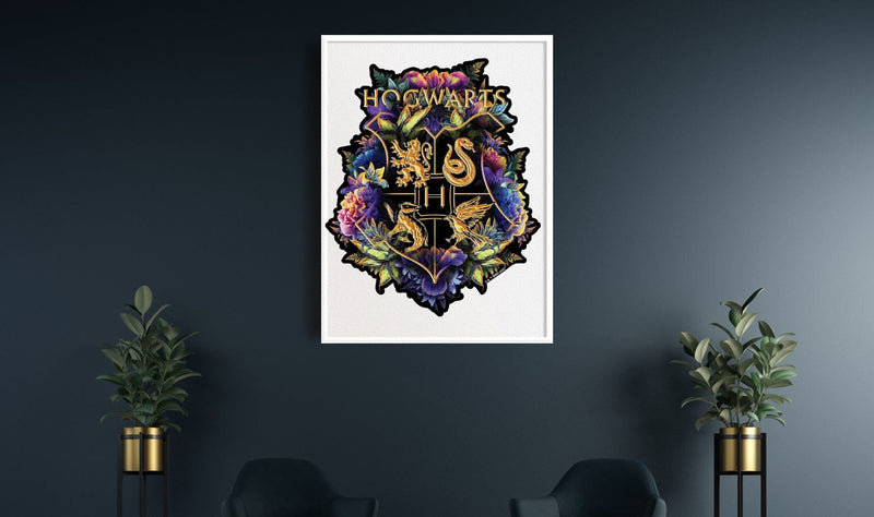 Advanced UV printing technology showcases the vivid, colorful flowers adorning the combined Hogwarts houses logo, resulting in an awe-inspiring art display when assembled.