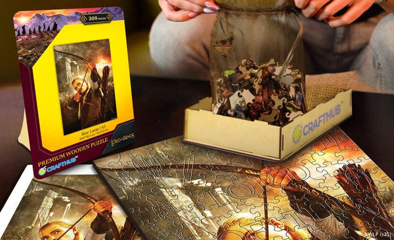 Assemble the darkness and legends of Middle-earth with unique pieces shaped like Aragorn, Gollum, Gandalf, Sauron, the One Ring, Elven leaves, Dwarven axes, and the White Tree of Gondor.