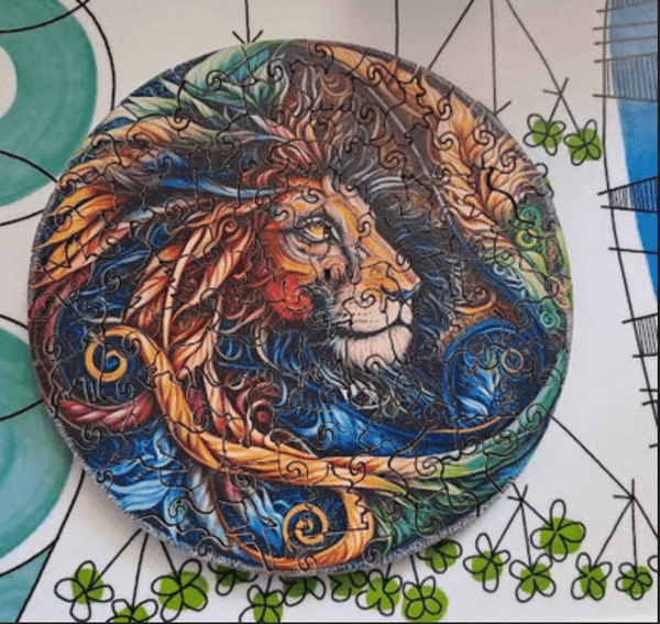 Assembling the Lion puzzle, you’ll find pieces shaped like wild animals, each echoing the animal kingdom’s beauty, all centered around the regal lion.