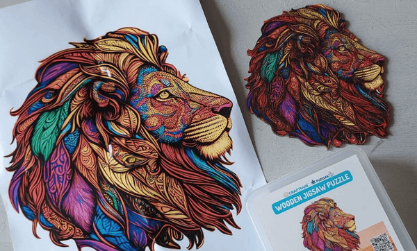 As you assemble the Majestic Lion puzzle, you'll uncover pieces shaped like various jungle animals.