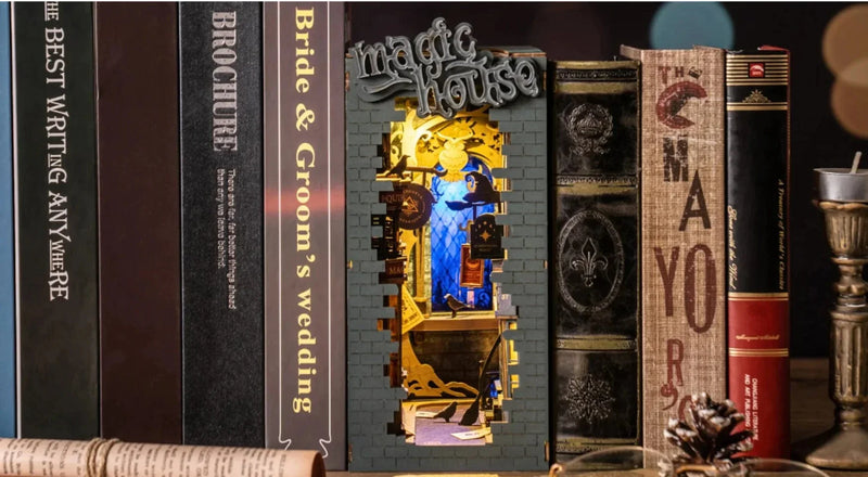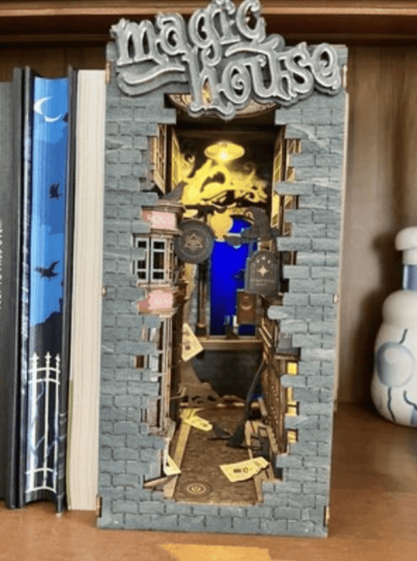 Step into the enchanting realm of magic with this self-assembly book nook kit. This book nook will perfectly complement your other magically inspired bookshelf decorations, alongside your collection of captivating magic novels and mysterious multiverse books, completing the immersive ambiance. Welcome to the captivating world of magic!