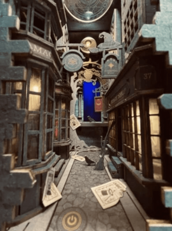 Step through the creative acrylic doorways that lead you to the entrance of a magical world. Within this book nook, choose a corner of the street and engage in secret magic practice and spellcasting, immersing yourself in a realm of enchantment and wonder.