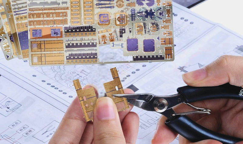 This is a well thought out model, but with very small pieces. Recommend adding small pieces BEFORE bending flat areas if possible. Lots of patience, gentle handling, and time. You need a magnifying light, tweezers, needle nose pliers, fine clippers and..occasionally..super glue.