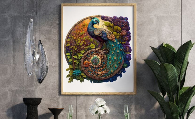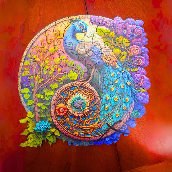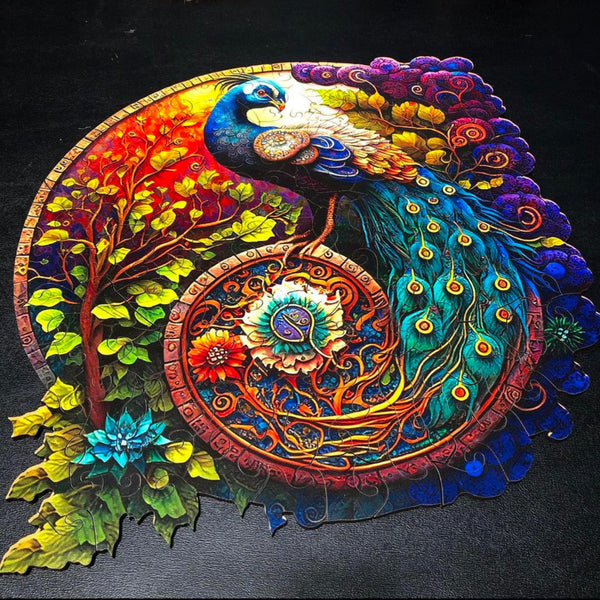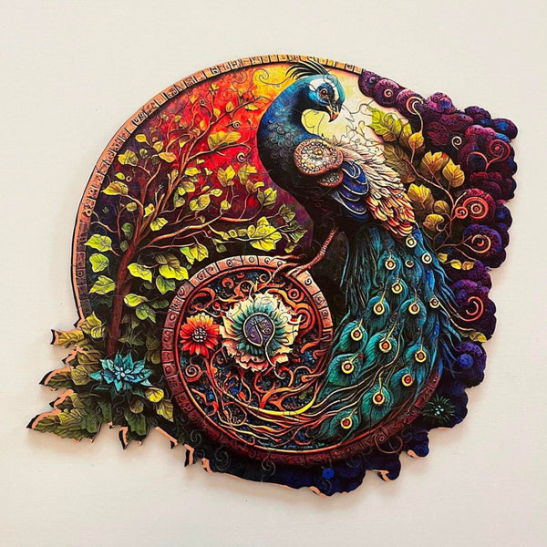 Embark on a balanced journey, unveiling a symphony of hues and patterns, capturing the essence of Yin and Yang through the majestic peacock and the myriad of creatures that accompany it. Once pieced together, marvel at the harmonious dance of colors and forms.