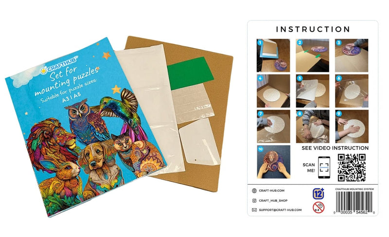 Our kit features a specialized cardboard base designed for quick and easy puzzle inversion. With this handy tool, transforming your completed puzzle into a piece of wall art is a breeze, saving you time for more puzzling fun!