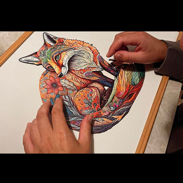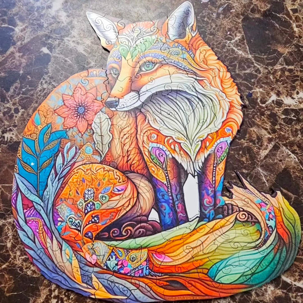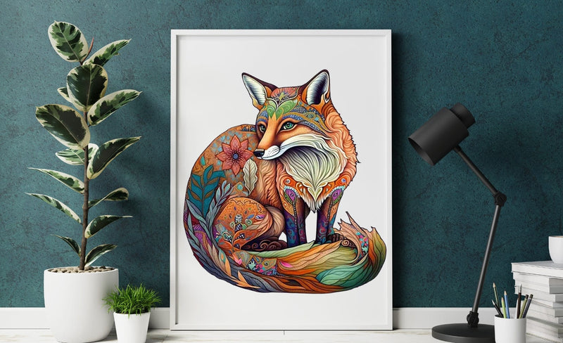 Immerse yourself in the captivating world of land meets sea with this “Sly Fox” wooden jigsaw puzzle for adults. Highlighted with marine motifs and intricately designed sections, this puzzle masterfully merges the cunning of the fox with the allure of underwater life.