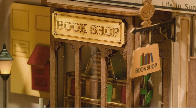 We’ve equipped you with everything necessary to construct this miniature town tableau - complete with wooden components and tools. You will gradually reconstruct the entire scenery, from storefronts and roads to trees and a clock. This enjoyable and straightforward book nook shelf insert project is fitting for both children and adults.