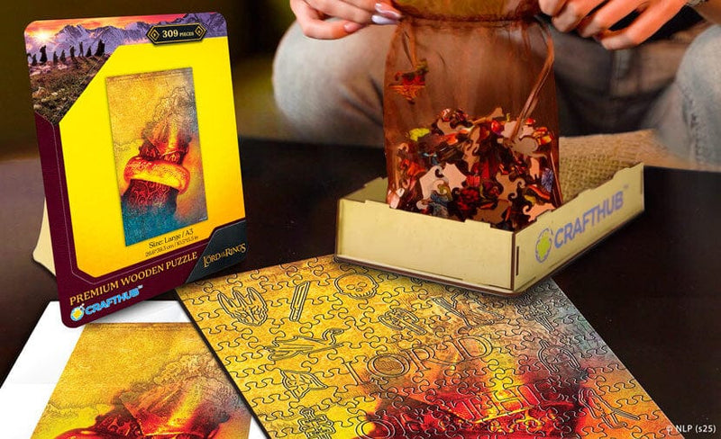 Assemble the darkness and legends of Middle-earth with unique pieces shaped like Aragorn, Gollum, Gandalf, Sauron, the One Ring, Elven leaves, Dwarven axes, and the White Tree of Gondor.