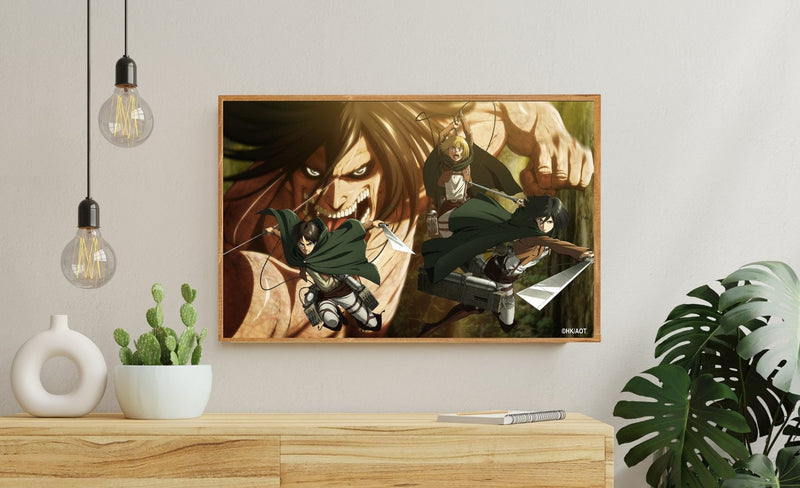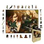 Delve into the heart of the story with our unique puzzle pieces shaped featuring Eren, Mikasa, and a host of formidable Titans including The Pure, The Abnormal, and The Colossal.