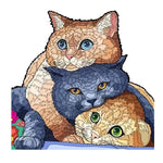 The pieces are wooden and laser cut into unique shapes and images. The pieces are interesting and fun, even before you start to put the puzzle together. The puzzle itself is vibrant, sturdy.