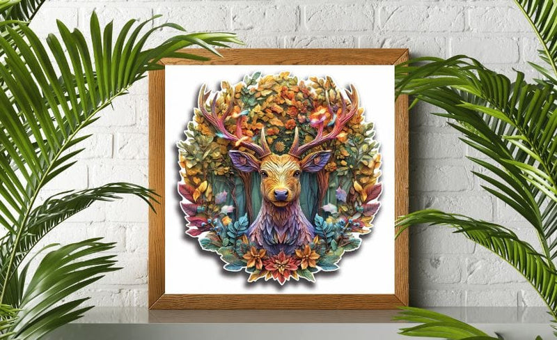 This puzzle turned out so pretty, I decided to frame it! The bright colors and deer design make it a real standout.