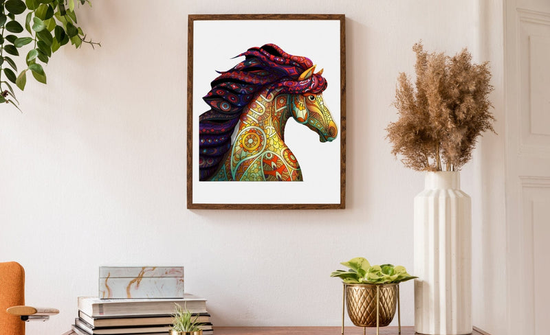 Advanced UV printing technology ensures bright and vivid Wisdom Horse design that becomes a stunning art displays when completed.